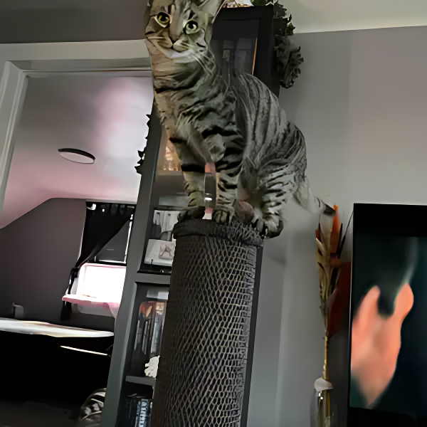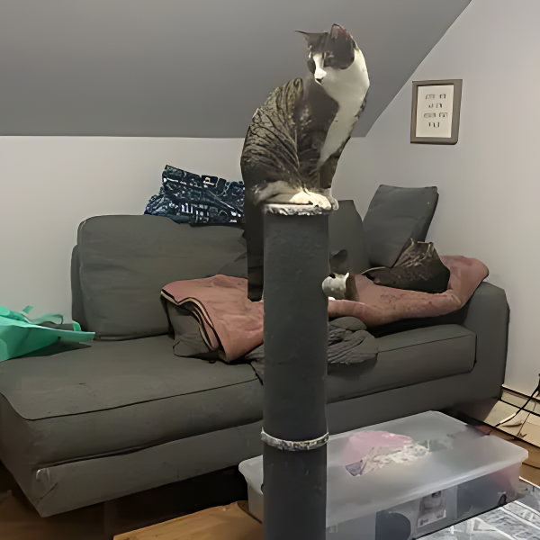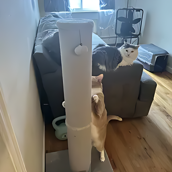 The scratching post stands at 41 inches, providing plenty of space for your cat to stretch and climb.